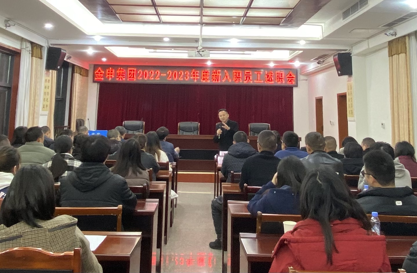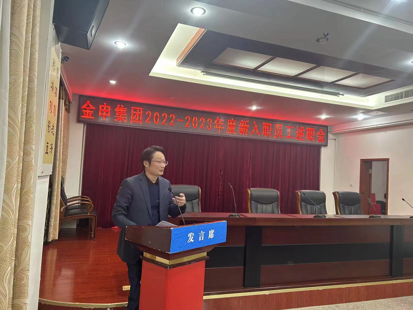 2023年12月14日,金申集團公司召開2022-2023年新進員工述職會,集團公司黨委書記胡凌飛、黨委副書記秦林、紀委書記孫江、相關公司及集團部門負責人、新員工共計40余人參加。