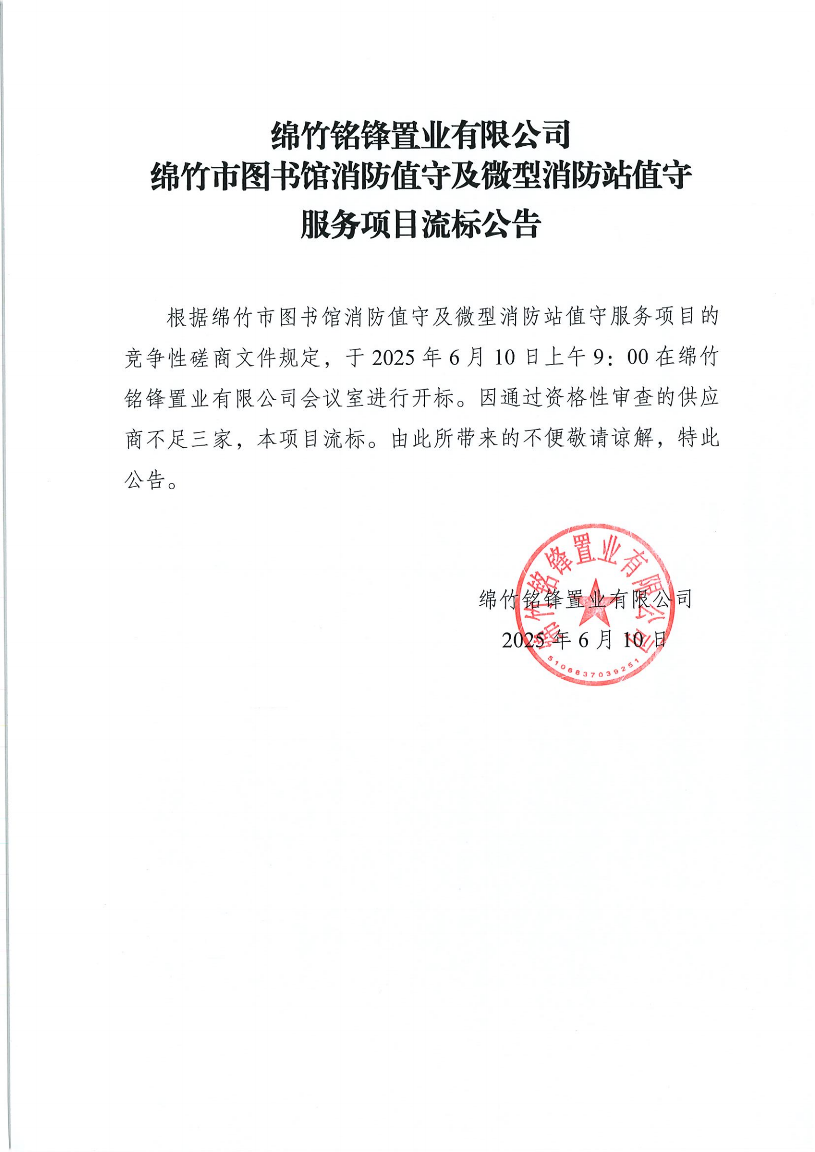 市圖書館消防值守及微型消防站值守服務項目流標公告