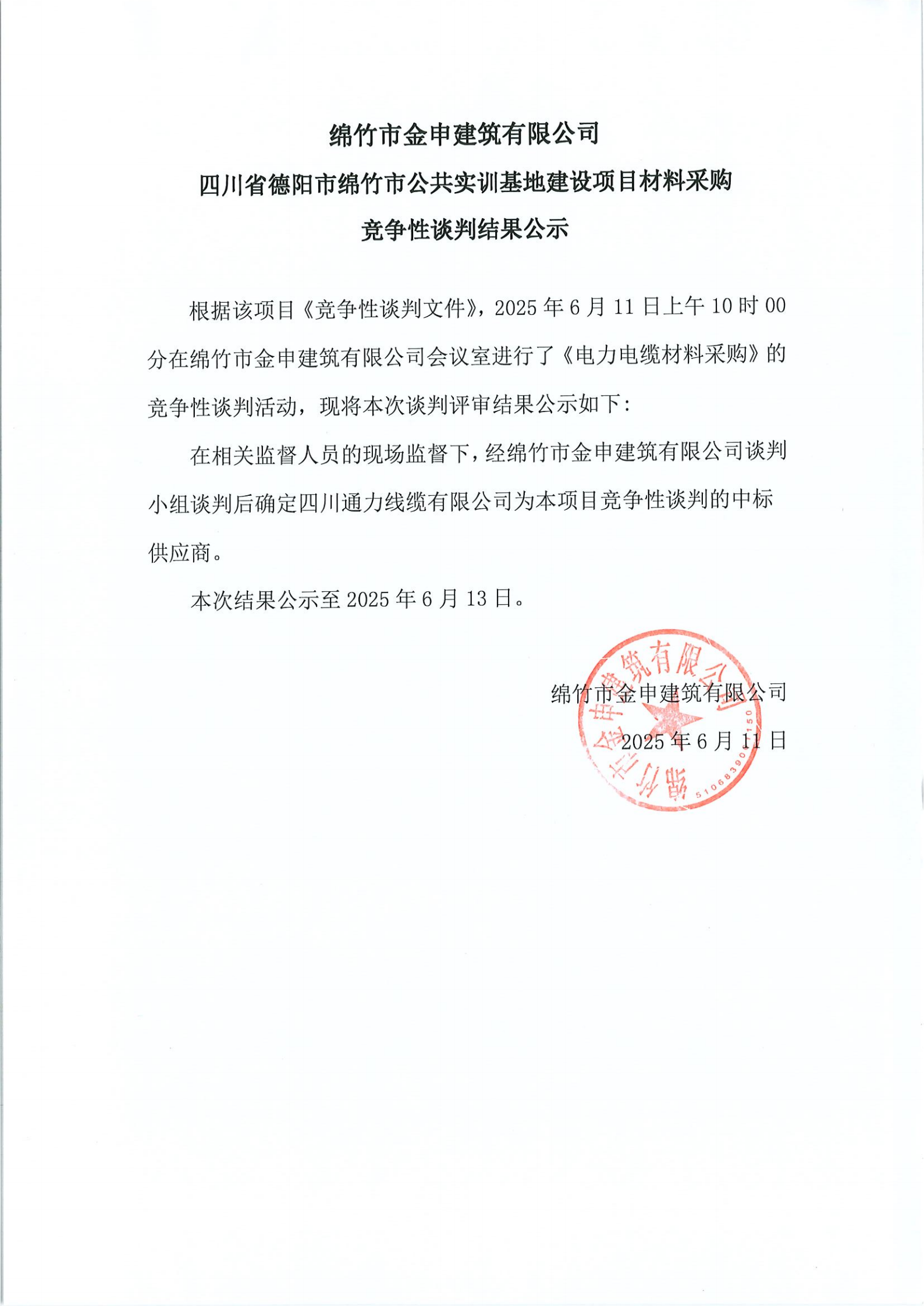 綿竹市公共實(shí)訓(xùn)基地建設(shè)項(xiàng)目材料采購(gòu) 競(jìng)爭(zhēng)性談判結(jié)果公示