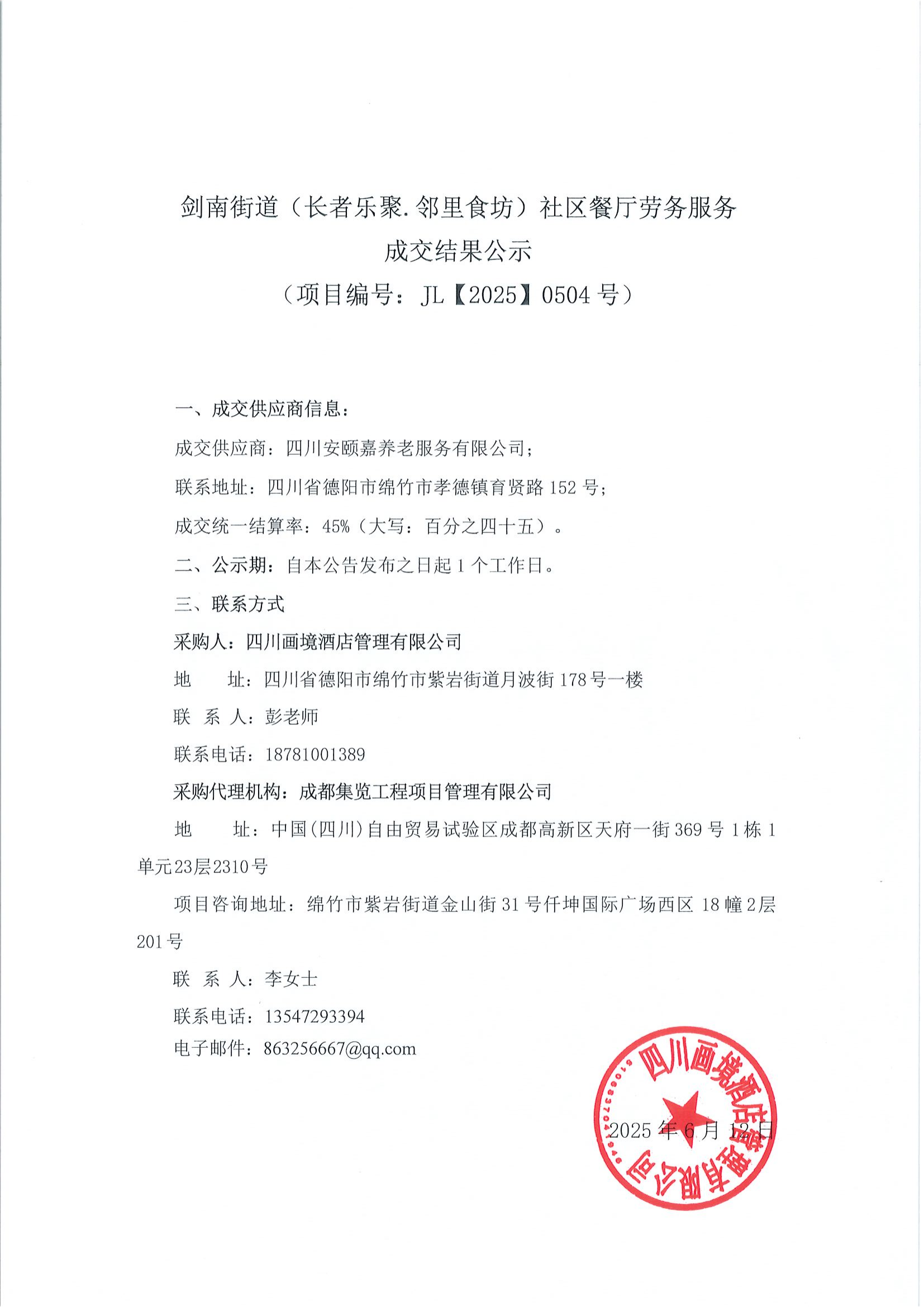 長者樂聚.鄰里食坊社區(qū)餐廳勞務服務成交結果公示