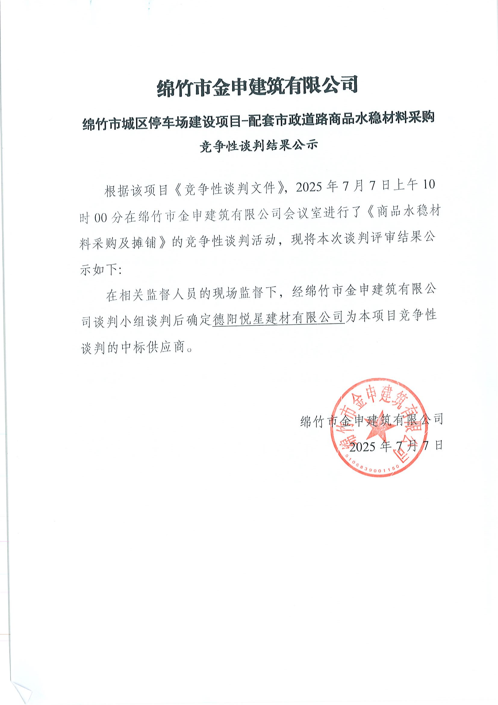 城區(qū)停車場(chǎng)建設(shè)項(xiàng)目(商品水穩(wěn))競(jìng)爭(zhēng)性談判結(jié)果公示