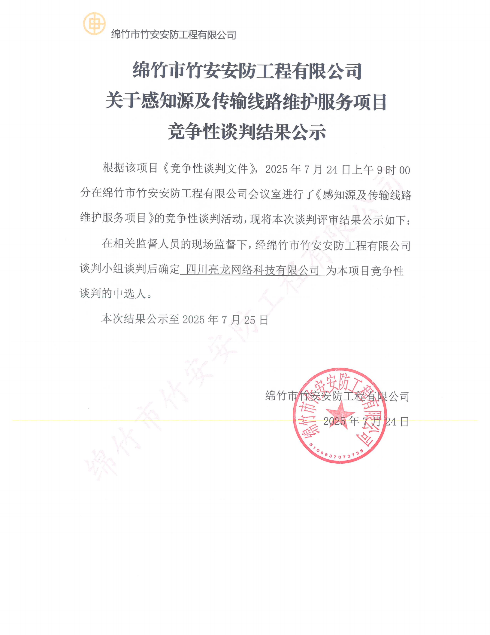 感知源及傳輸線路維護(hù)服務(wù)項(xiàng)目競爭性談判結(jié)果公示