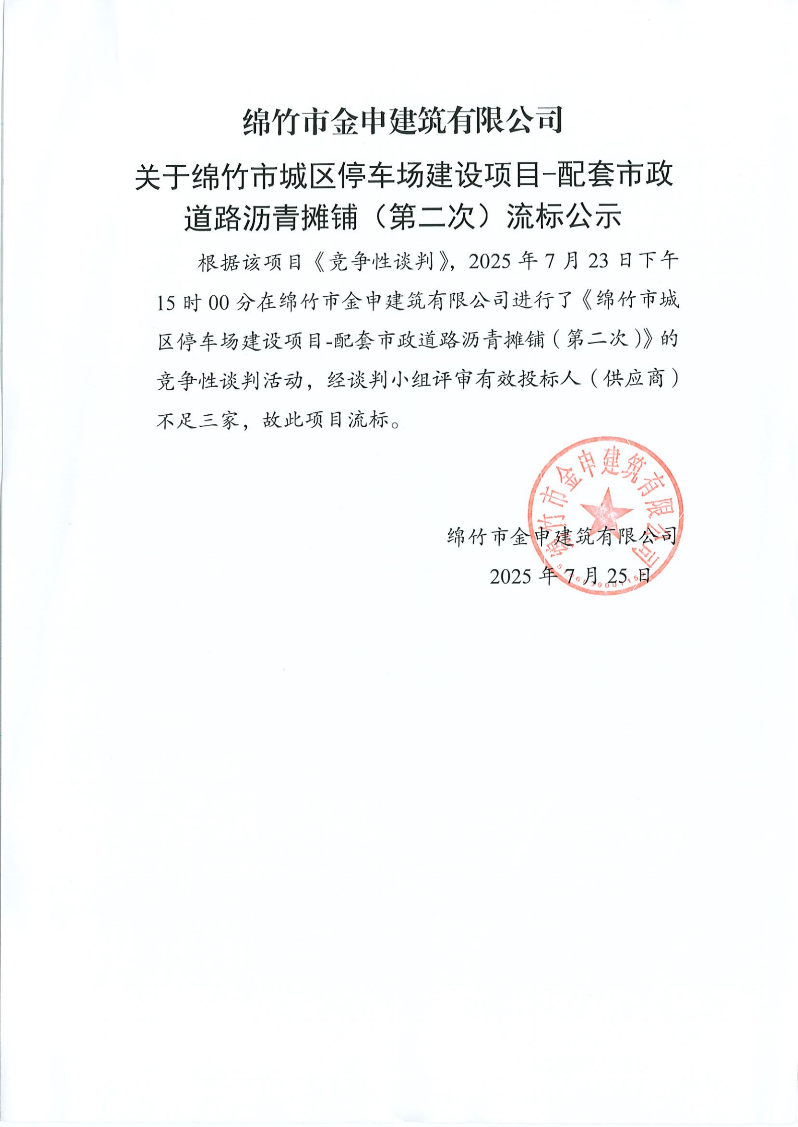 城區(qū)停車場建設項目-常興街(瀝青攤鋪第二次)流標公告