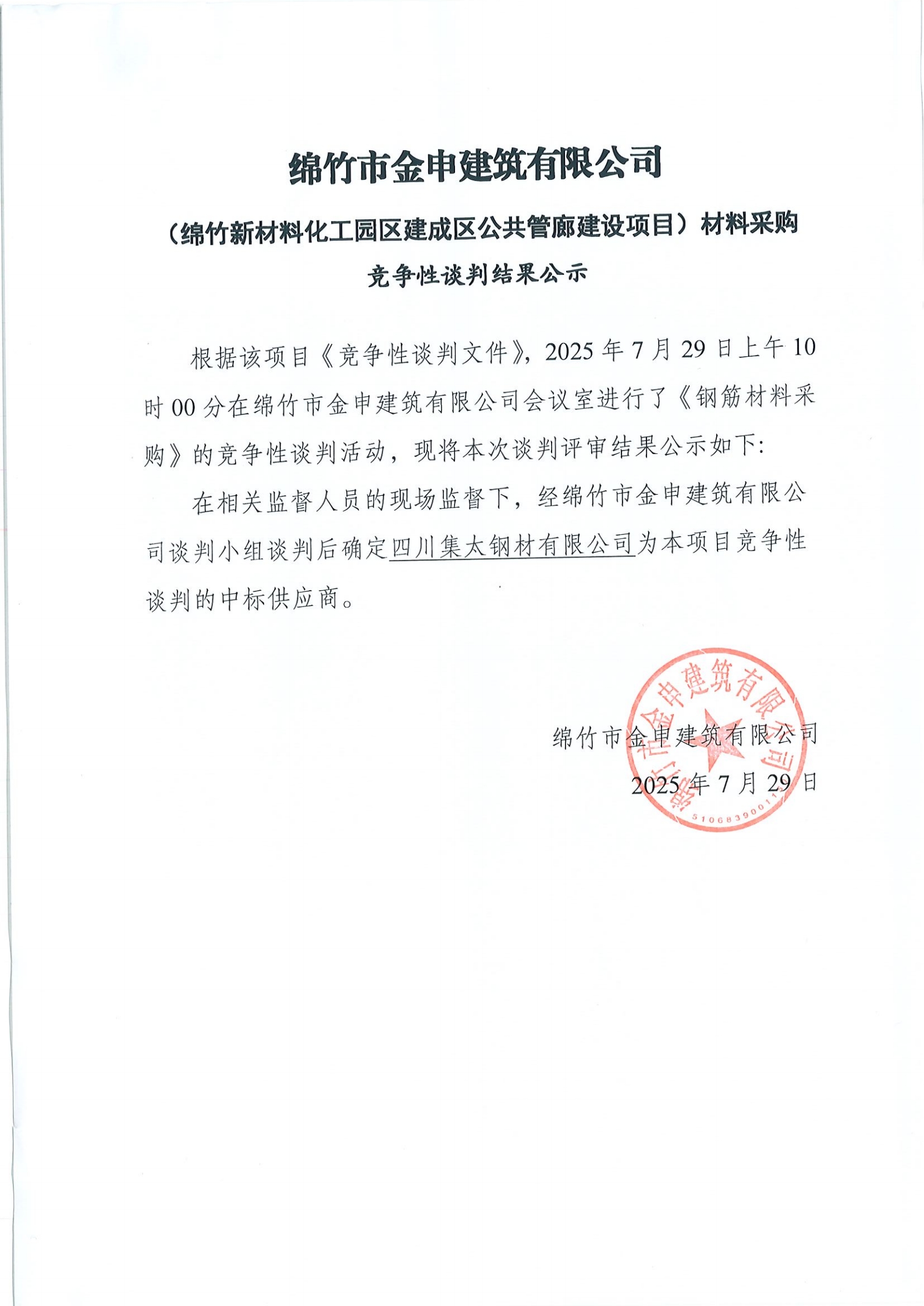 公共管廊項(xiàng)目(鋼筋)競(jìng)爭(zhēng)性談判結(jié)果公示