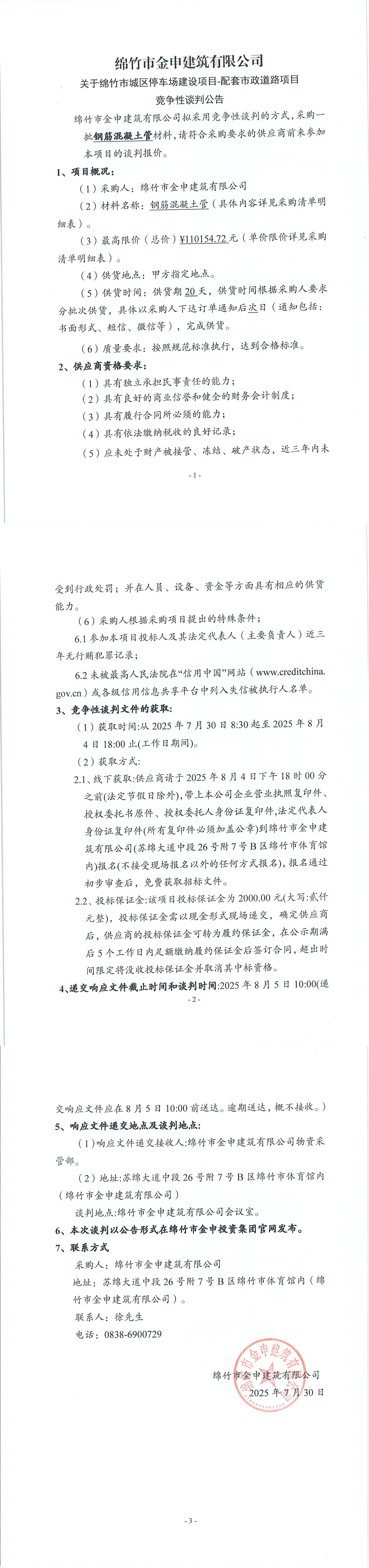 城區(qū)停車場-常興街(鋼筋混凝土管)-競爭性談判公告