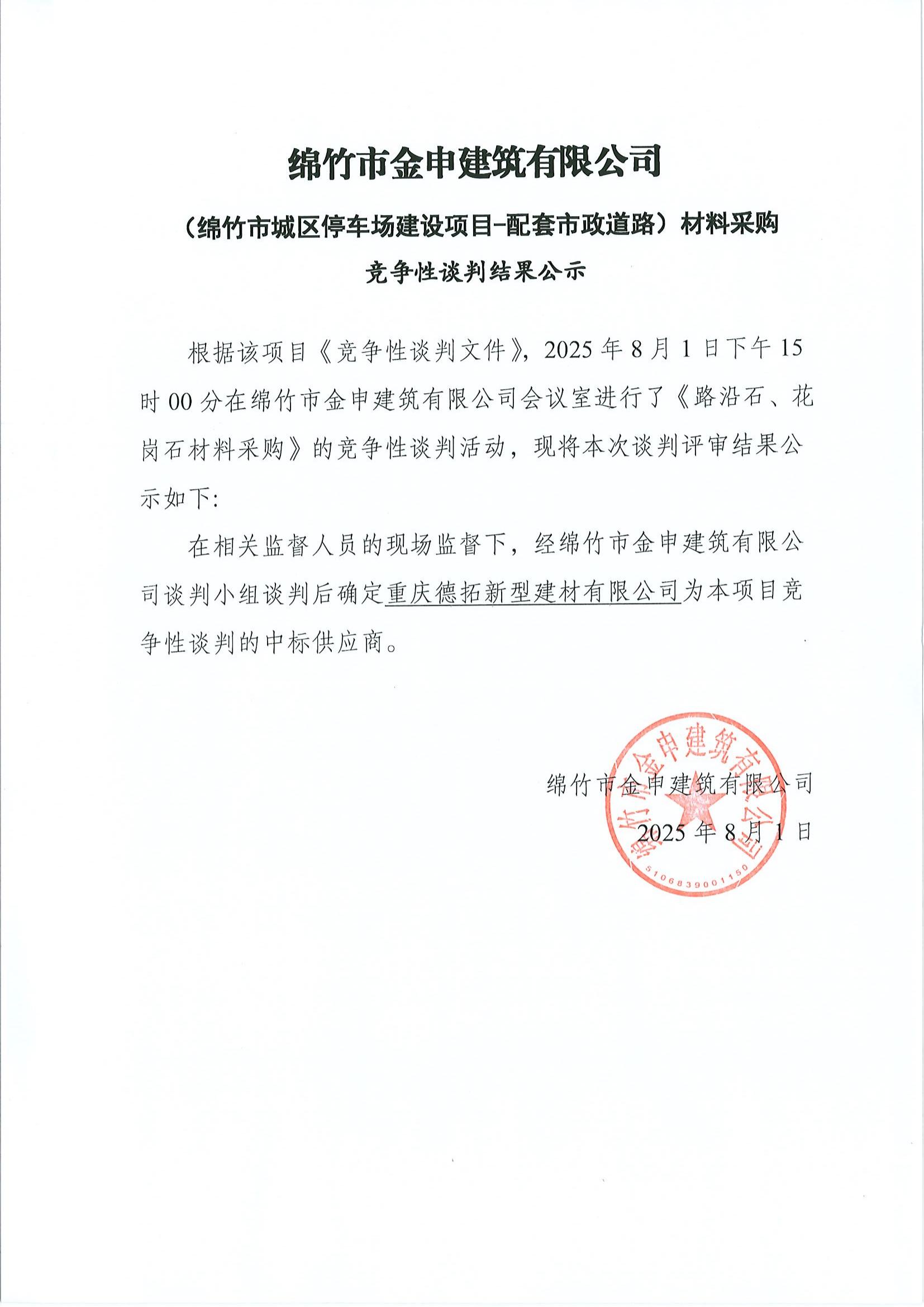城區(qū)停車場-常興街(路沿石、花崗石)中標(biāo)結(jié)果公示