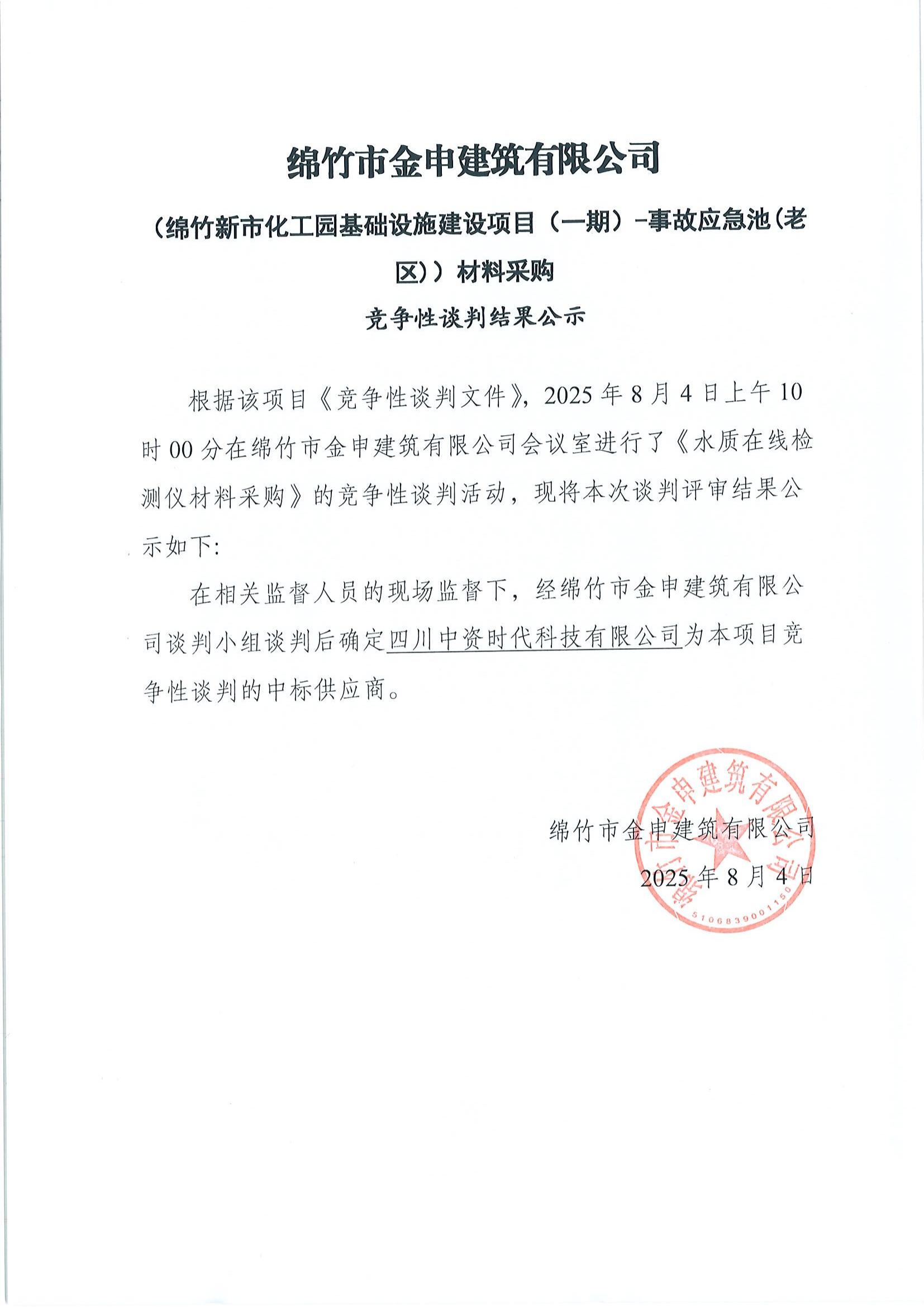 事故應(yīng)急池(水質(zhì)在線檢測儀)競爭性談判結(jié)果公示