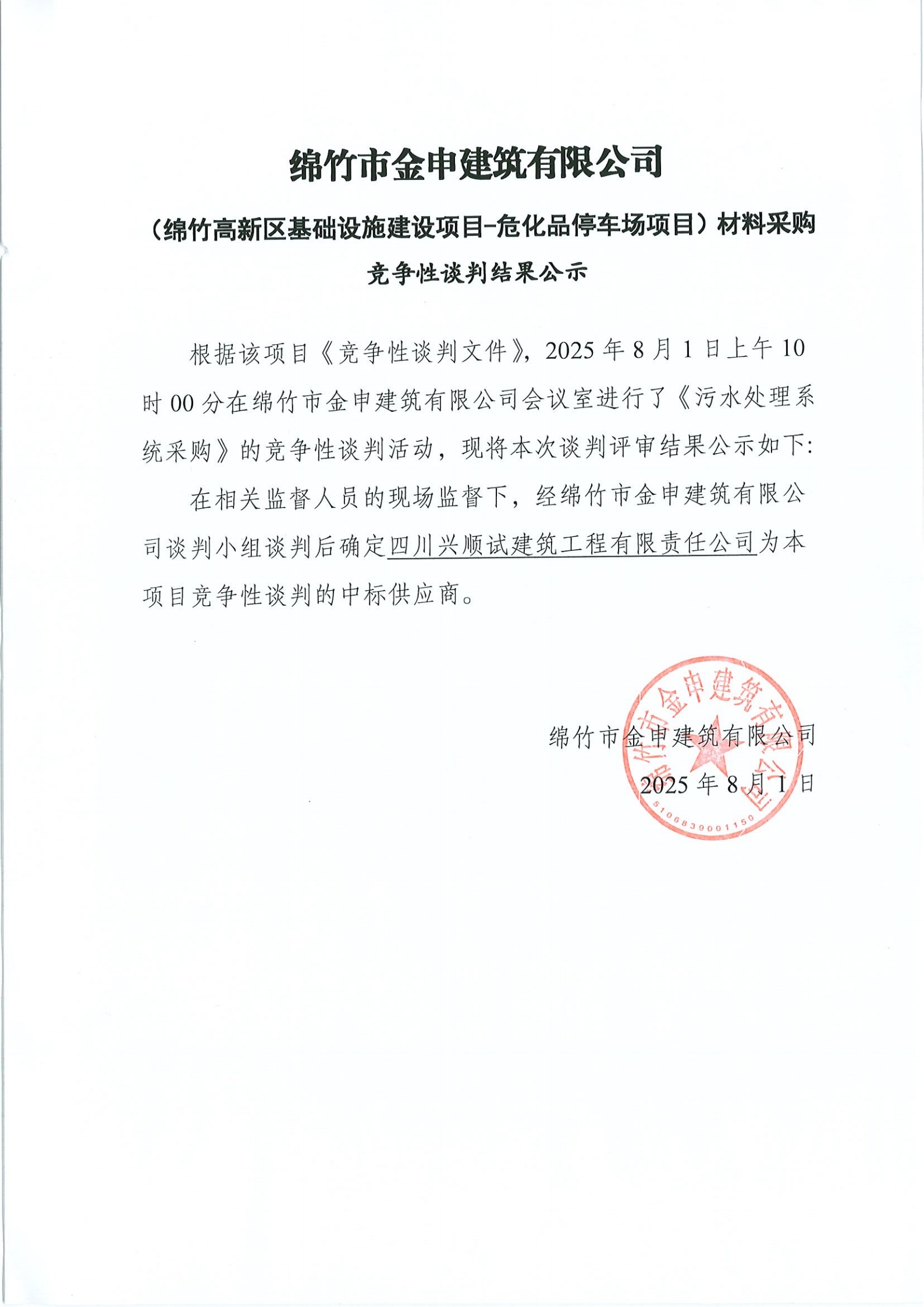 ?;\噲?chǎng)(污水處理設(shè)備)中標(biāo)通知公示