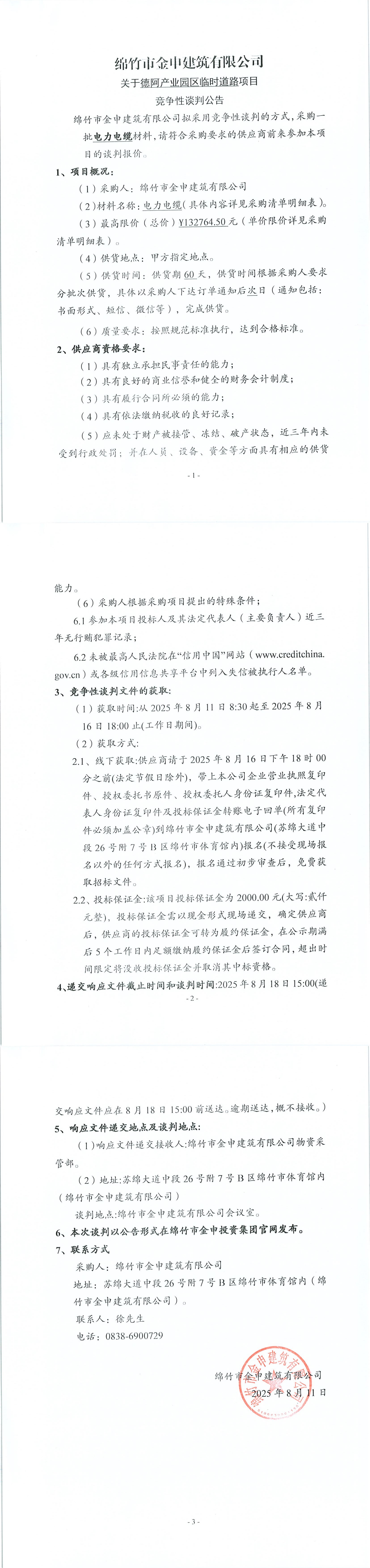 德阿產(chǎn)業(yè)園(電力電纜)競(jìng)爭(zhēng)性談判公告