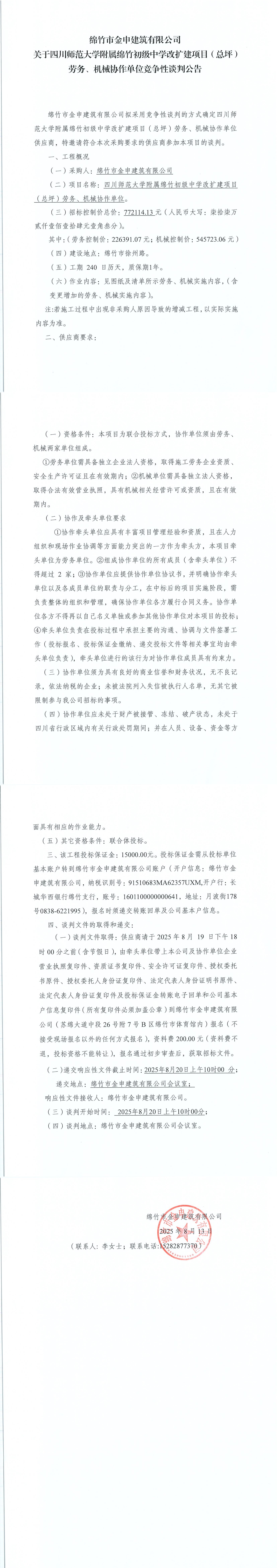 川師附中改擴建項目總坪勞務、機械協(xié)作競爭性談判公告