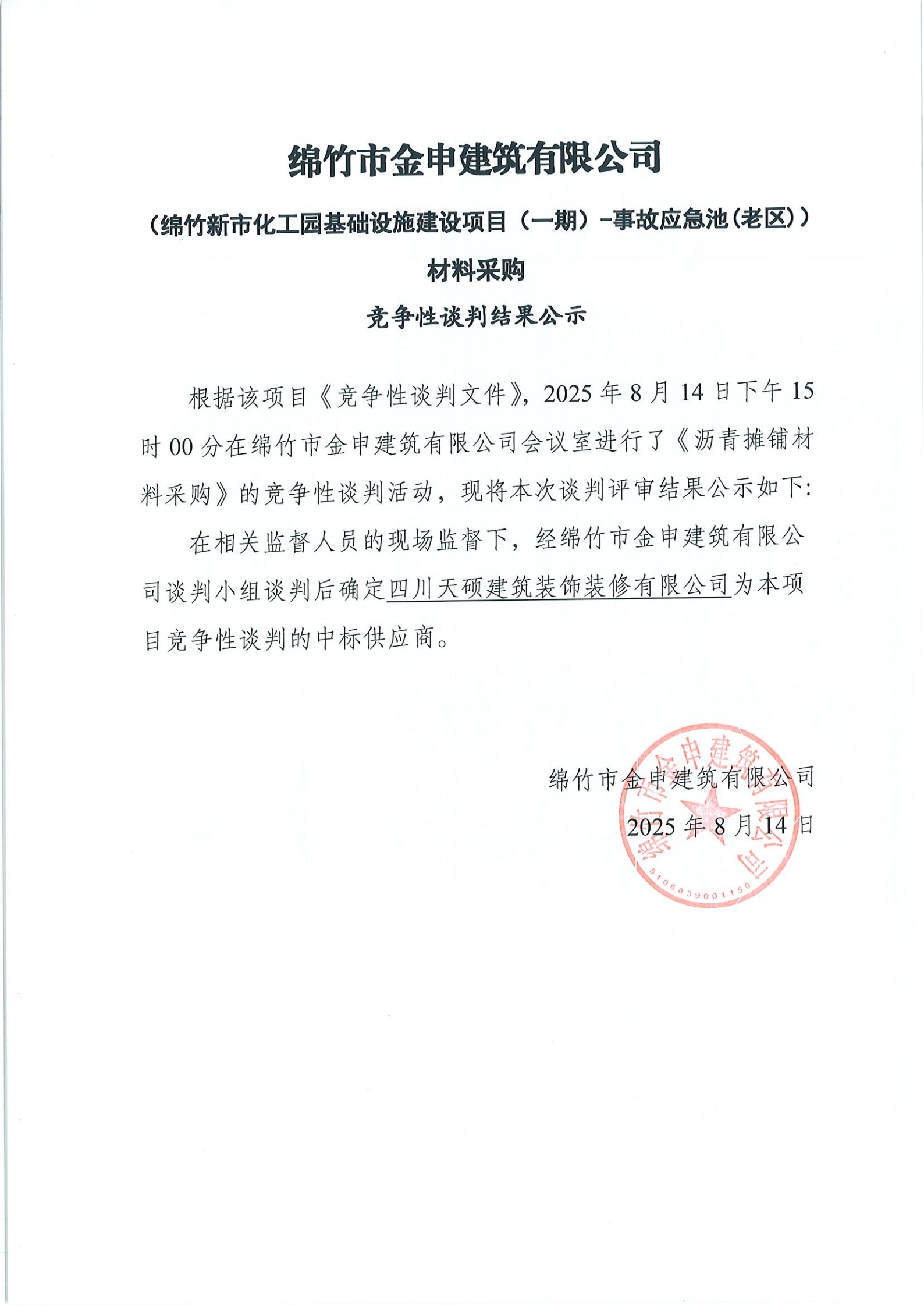 事故應急池(瀝青攤鋪)競爭性談判結果公示