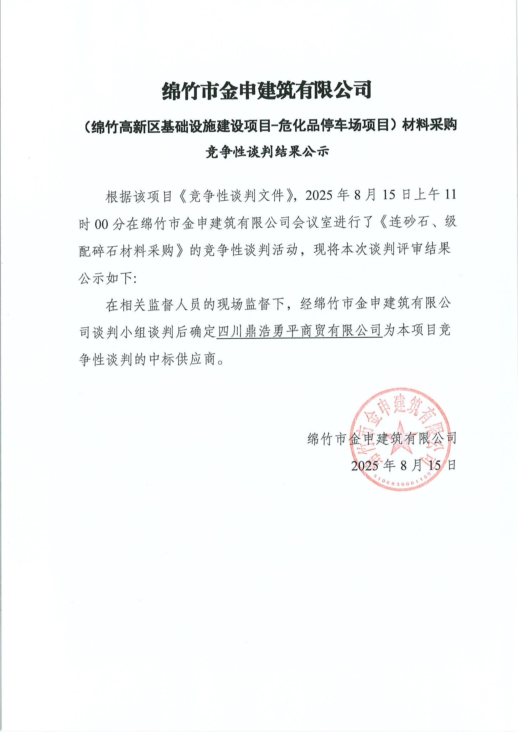 危化品停車(chē)場(chǎng)(瀝青談判)競(jìng)爭(zhēng)性談判結(jié)果公示