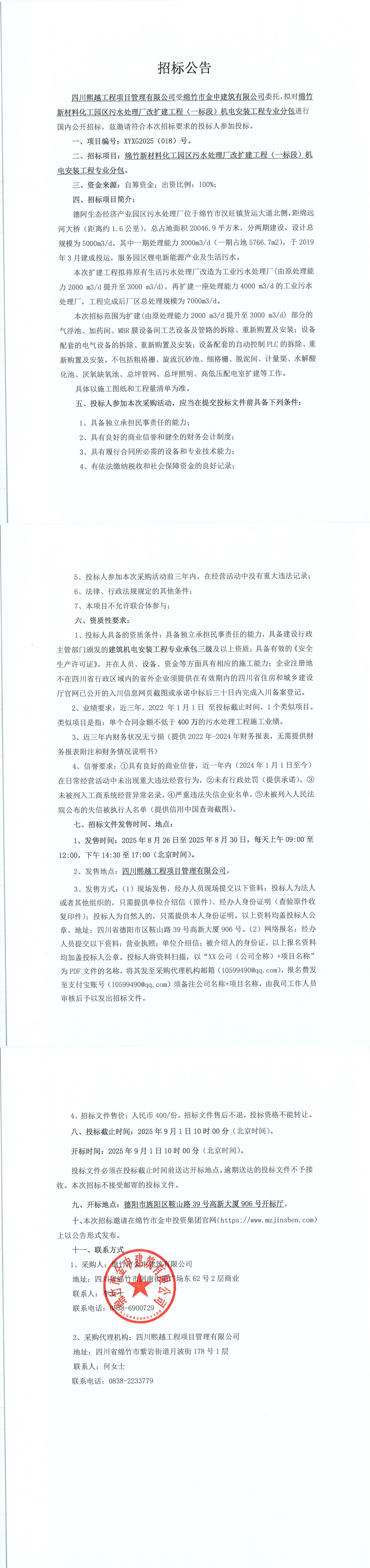 新材料化工園區(qū)污水處理廠改擴(kuò)建一標(biāo)段機(jī)電安裝專業(yè)分包