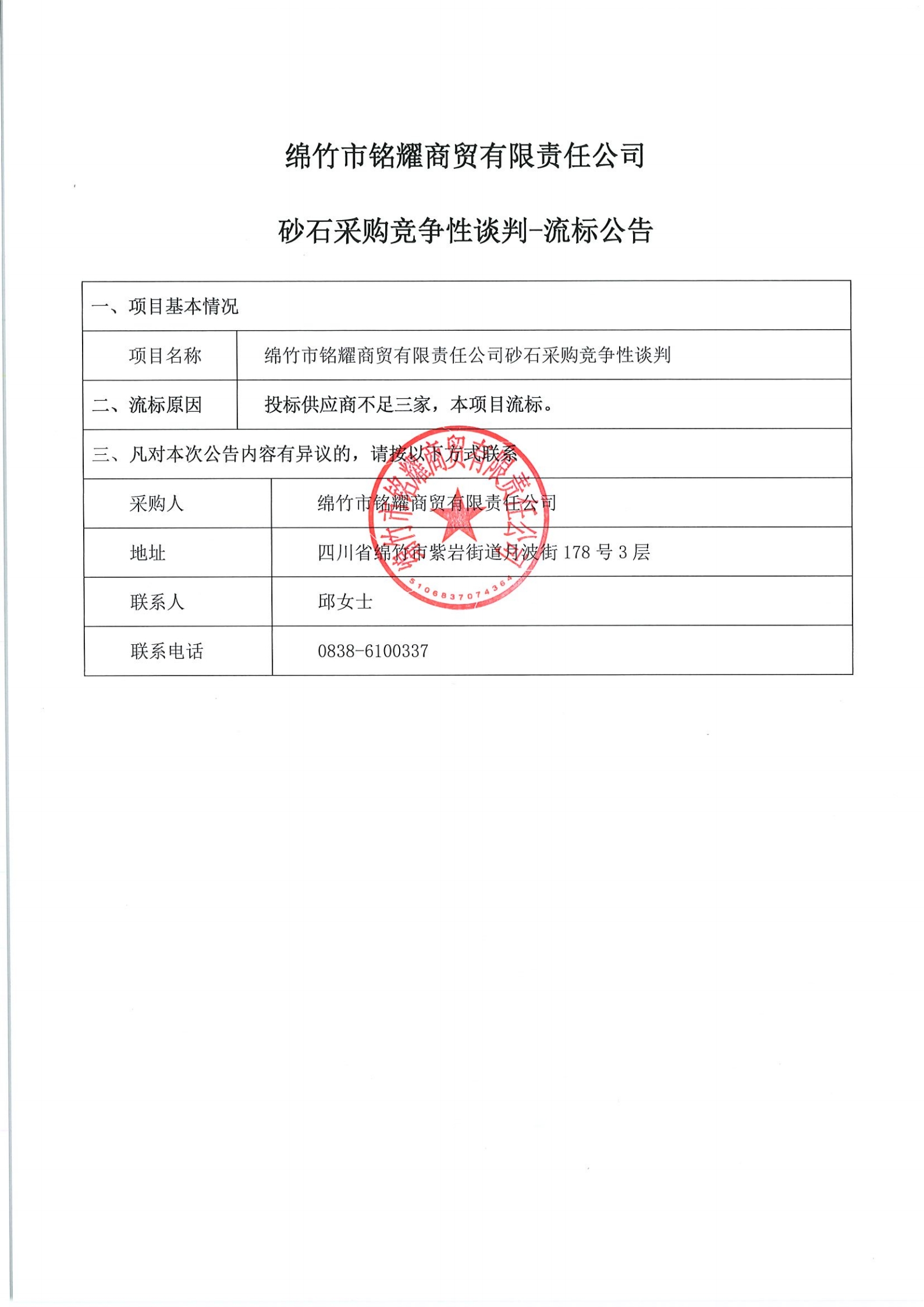 銘耀公司流標公告-砂石
