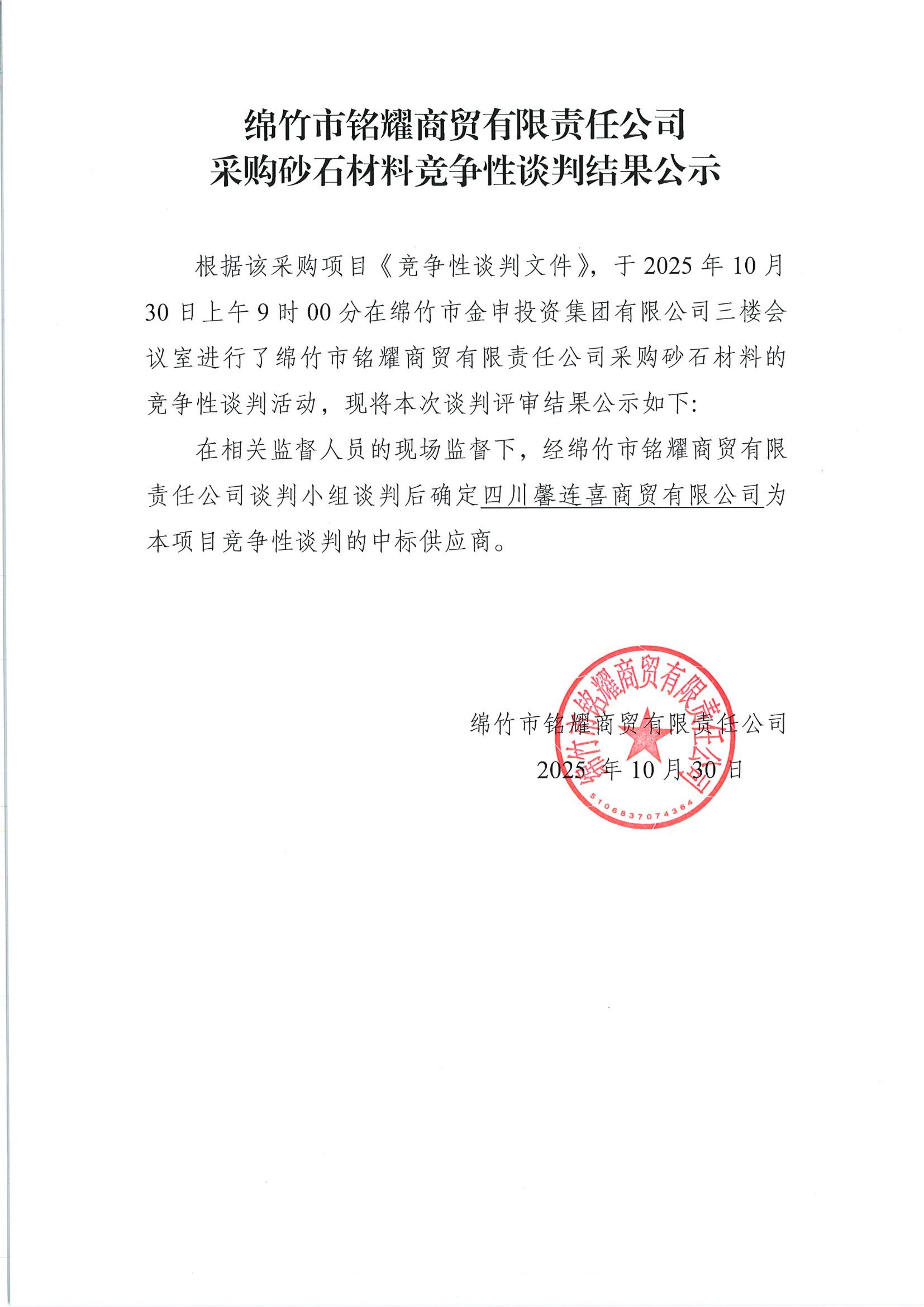 銘耀商貿(mào)采購砂石競爭性談判結(jié)果公示