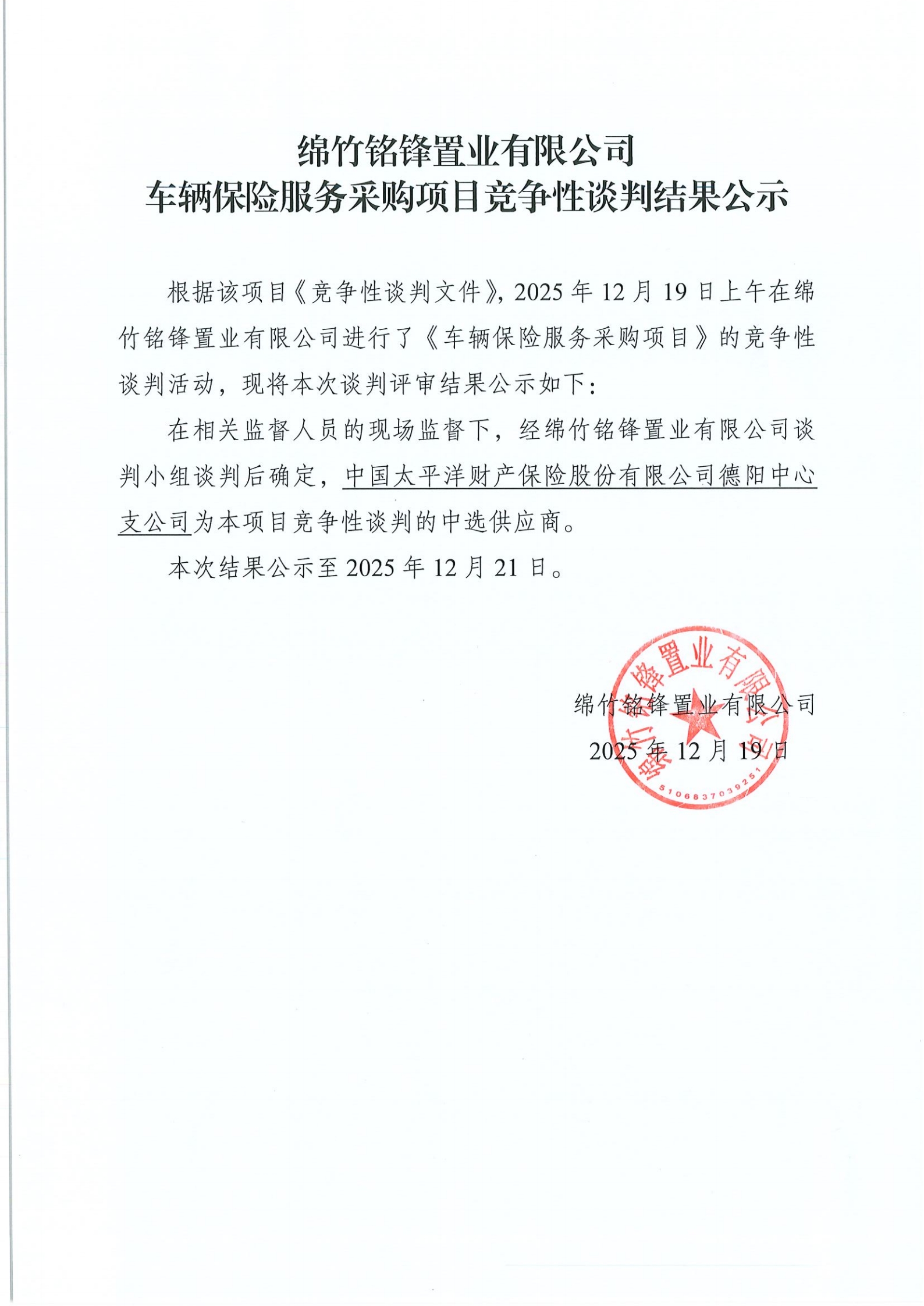 車輛保險(xiǎn)服務(wù)采購項(xiàng)目競(jìng)爭性談判結(jié)果公示