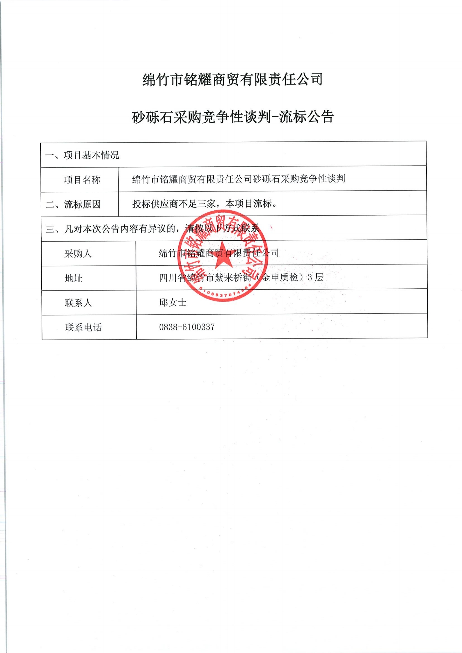銘耀商貿(mào)砂礫石采購(gòu)競(jìng)爭(zhēng)性談判-流標(biāo)公告