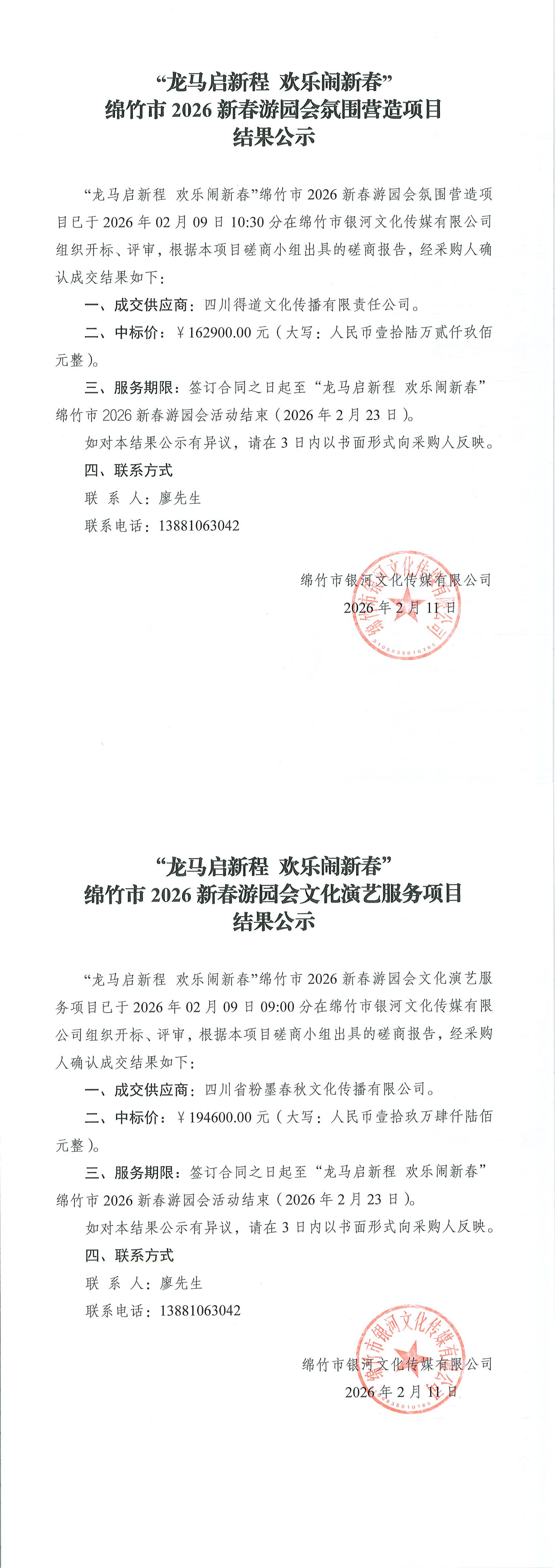 “龍馬啟新程 歡樂鬧新春”綿竹市2026新春游園會(huì)氛圍營造項(xiàng)目結(jié)果公示