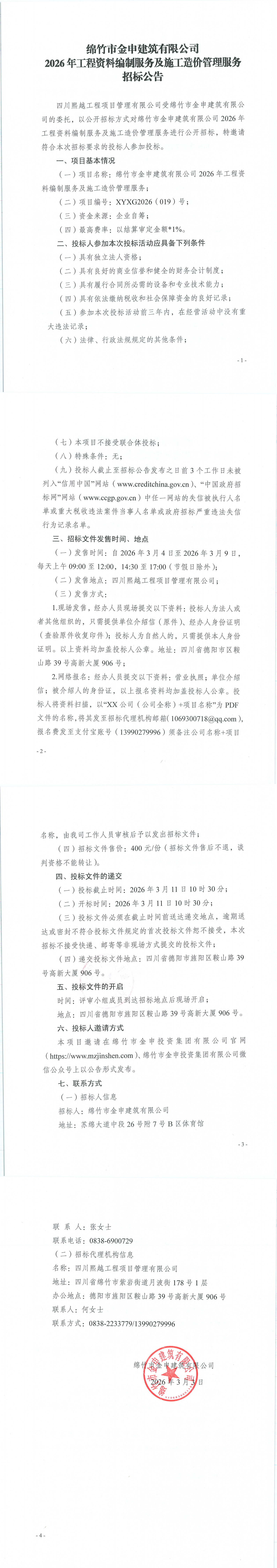 金申建筑2026年工程資料編制服務(wù)及施工造價管理服務(wù)招標公告