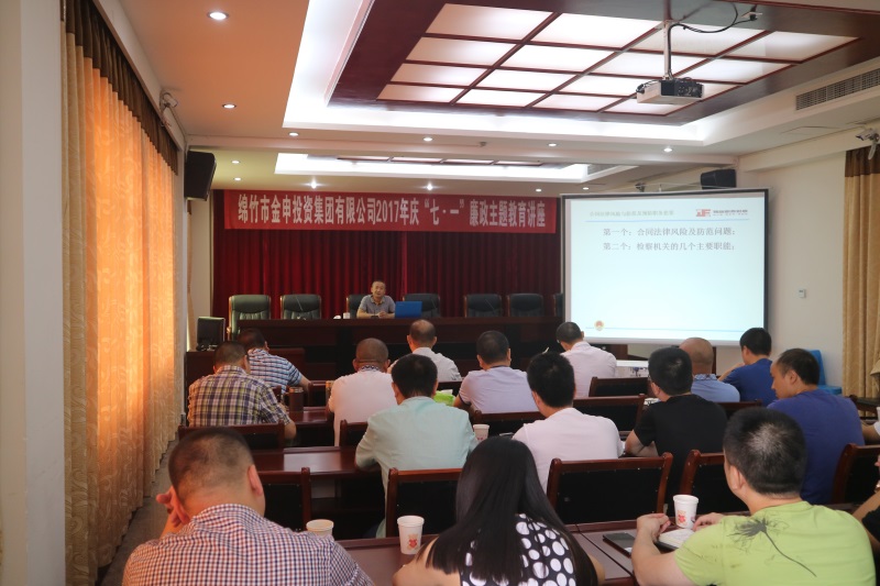 綿竹市金申投資集團(tuán)有限公司邀請市檢察院職務(wù)犯罪預(yù)防局易建華局長給全體干部職工上了一堂生動的廉政教育講座。易建華局長以案說法、以案釋紀(jì)、以案施教,概述了當(dāng)前的反腐形勢,詳細(xì)分析了職務(wù)犯罪的易發(fā)點(diǎn)和多發(fā)點(diǎn)及其原因,通過典型剖析,用身邊的反面典型人和事教育金申集團(tuán)公司黨員干部警鐘長鳴、廉潔從業(yè)。綿竹市金申投資集團(tuán)有限公司黨委書記、董事長徐軍強(qiáng)調(diào),公司黨員干部要在日常工作中注重A級風(fēng)險(xiǎn)點(diǎn)防控,強(qiáng)化監(jiān)督管理和廉政教育,切實(shí)做到,杜絕職務(wù)犯罪行為發(fā)生。