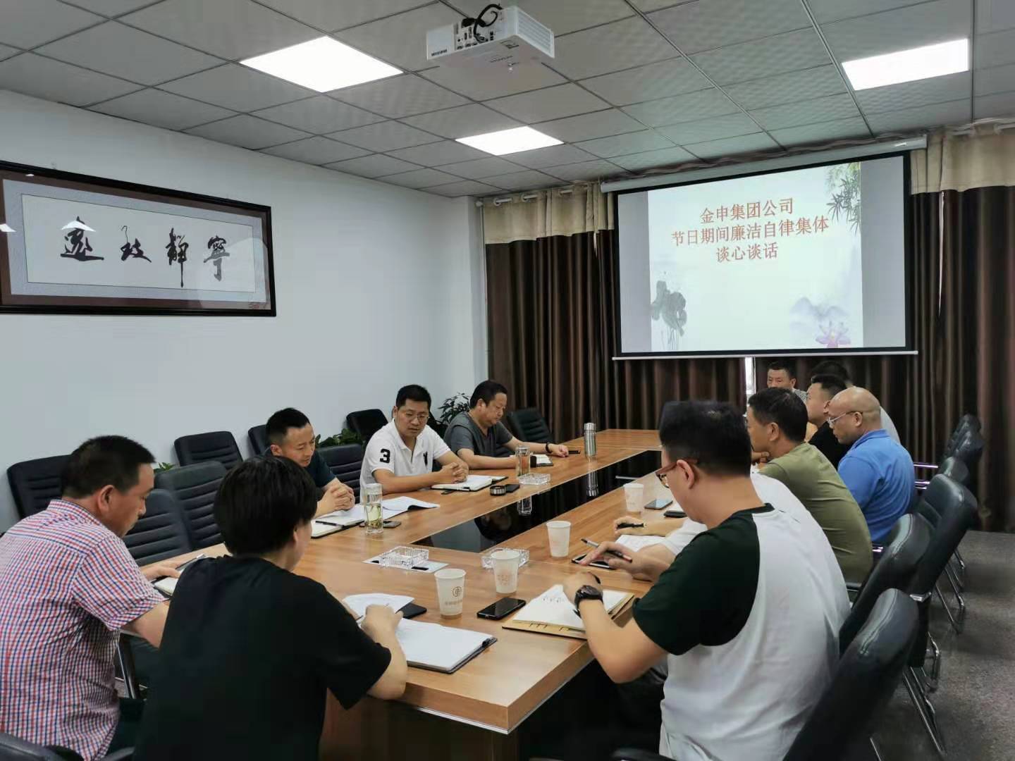 中秋、國(guó)慶將至,為深入落實(shí)中央八項(xiàng)規(guī)定精神,嚴(yán)防“四風(fēng)”反彈回潮,崇廉拒腐,9月11日下午,金申集團(tuán)公司開(kāi)展節(jié)前廉潔自律集體談心談話(huà),集團(tuán)公司領(lǐng)導(dǎo)班子成員、部門(mén)及子公司負(fù)責(zé)人、黨小組組長(zhǎng)參加會(huì)議。